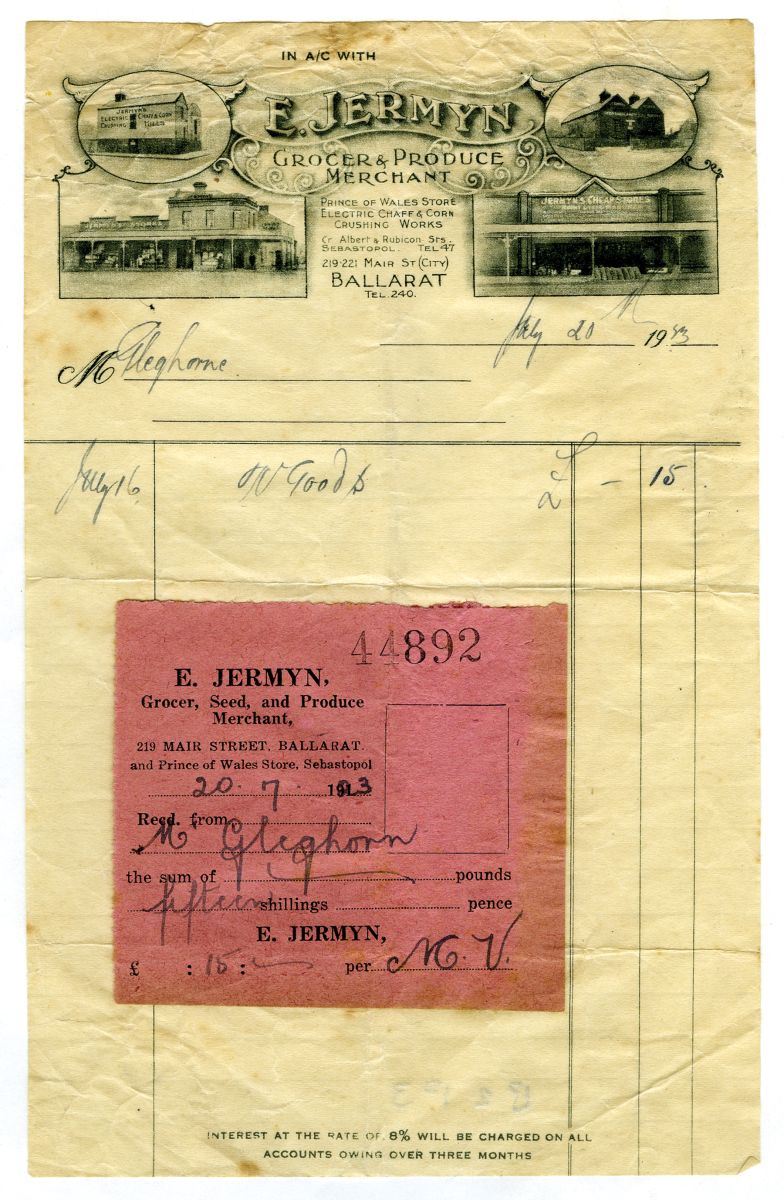 Cornishman Ellis Jermyn took over the business in 1884 re-naming it the Prince of Wales Store, adding a chaff mill and hay sheds. Jermyn, a respected businessman, built the grocery establishment up into a small-scale department store, extending to the west and to the south to accommodate his increased stock. A second building in Mair Street, Ballarat was also acquired.