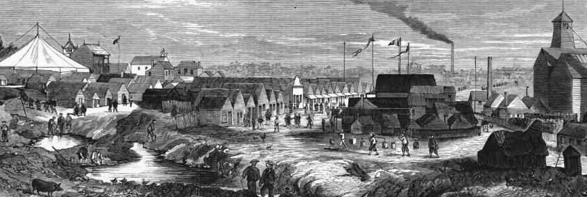 Chinese Quarter Ballarat with Circus tent and Joss House, Ebenezer & David Syme (Source: State Library of Victoria)