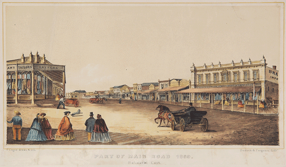Part of Main Rd 1859. Ballarat East by Francois Cogne. Courtesy of the Art Gallery of Ballarat